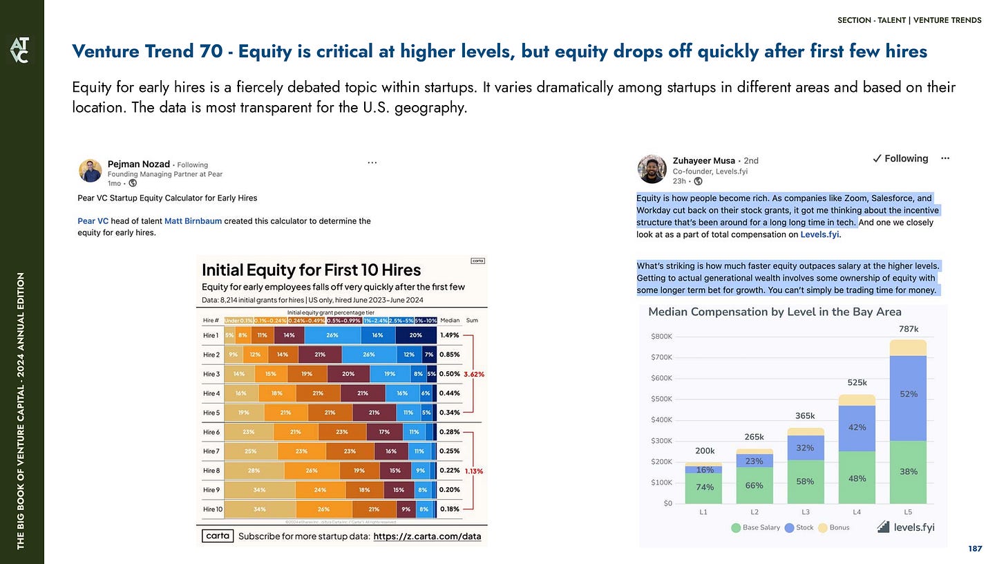 Equity is critical at higher levels, but equity drops off quickly after first few hires